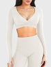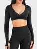 Yeoreo Aberney Langarm-Crop-Top – entworfen für Studio & Training. Formende, schmeichelhafte Passform mit doppellagiger Unterstützung, abnehmbaren Pads, Daumenlöchern und sicherem Unterbrustband für zuverlässigen Halt bei jeder Bewegung.